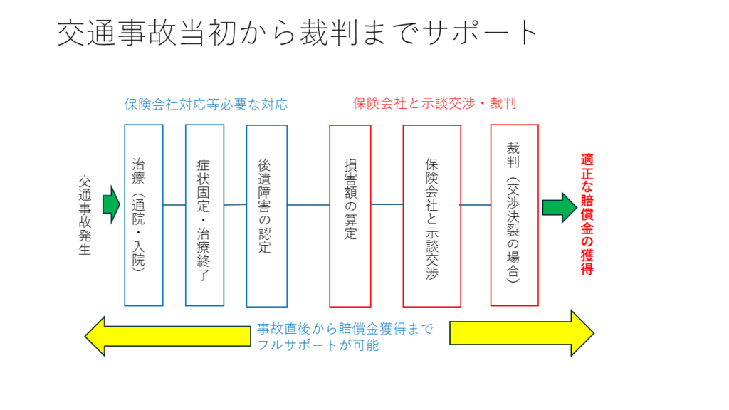 また、後遺障害が残る場合の交通事故の損害賠償は、症状固定までの段階でほぼ方向性が決まります。そのため、早めの相談をお勧めします。法律事務所エソラは、交通事故直後からの相談・受任が可能です。